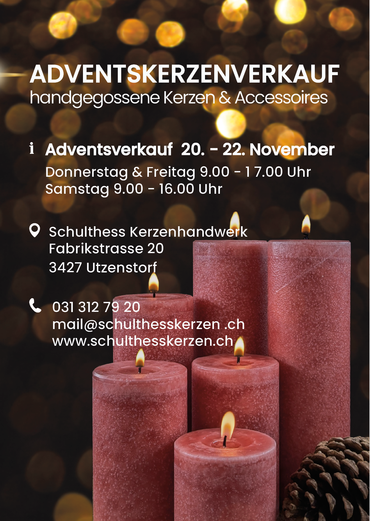 Ab 20. November bis 22. November findet unser alljährlicher Adventsverkauf mit verlängerten Öffnungszeiten statt.