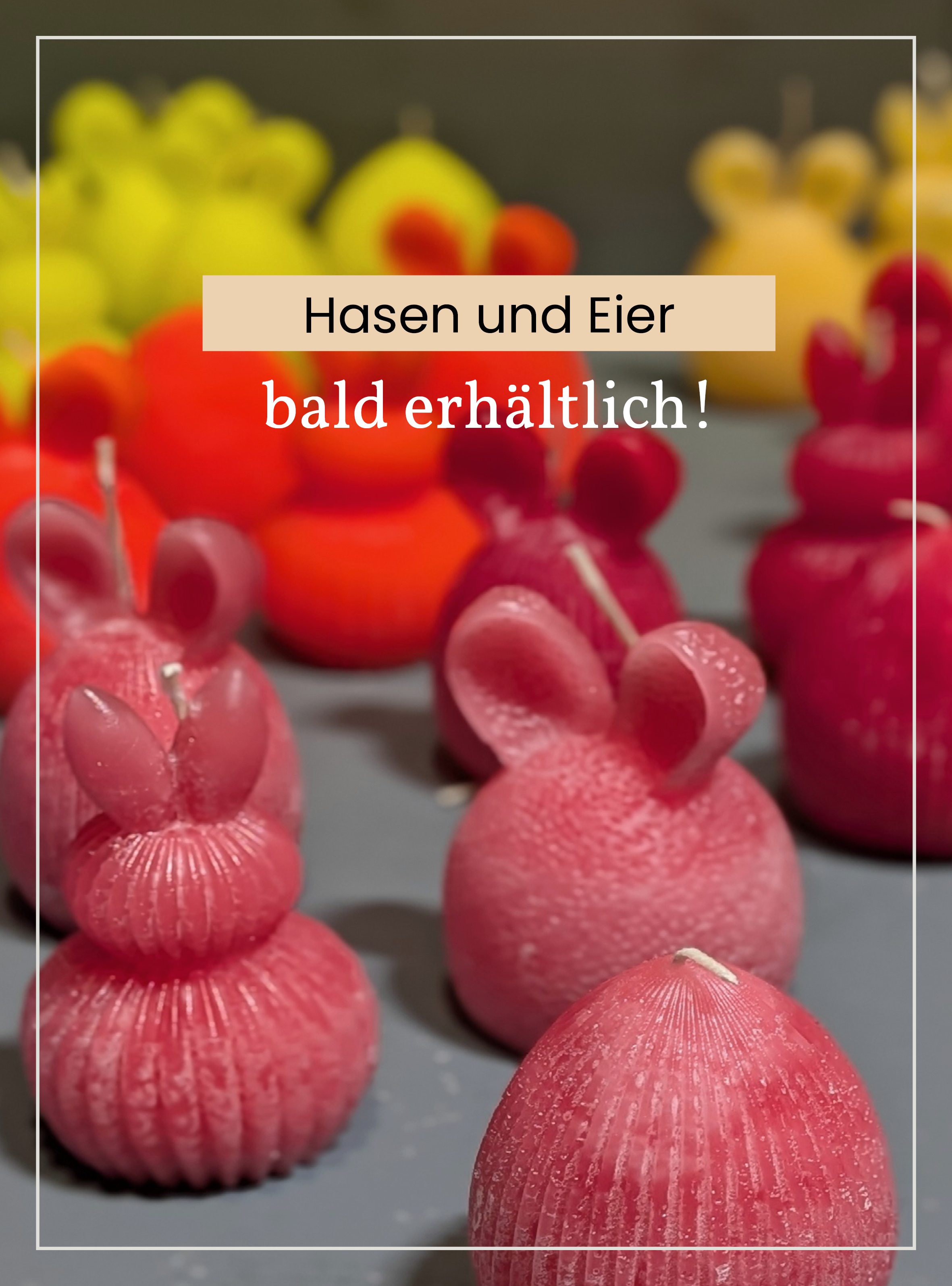 Unsere neuen Kerzenhasen bringen Frühlingsstimmung nach Hause – in leuchtenden Neonfarben oder sanften Pastelltönen, erhältlich in drei Formen sowie als Ei.