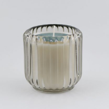 Duftkerzen aus 100% natürlichen Essenzen im schlichten Grauglas mit drei verschiedenen Strukturen: