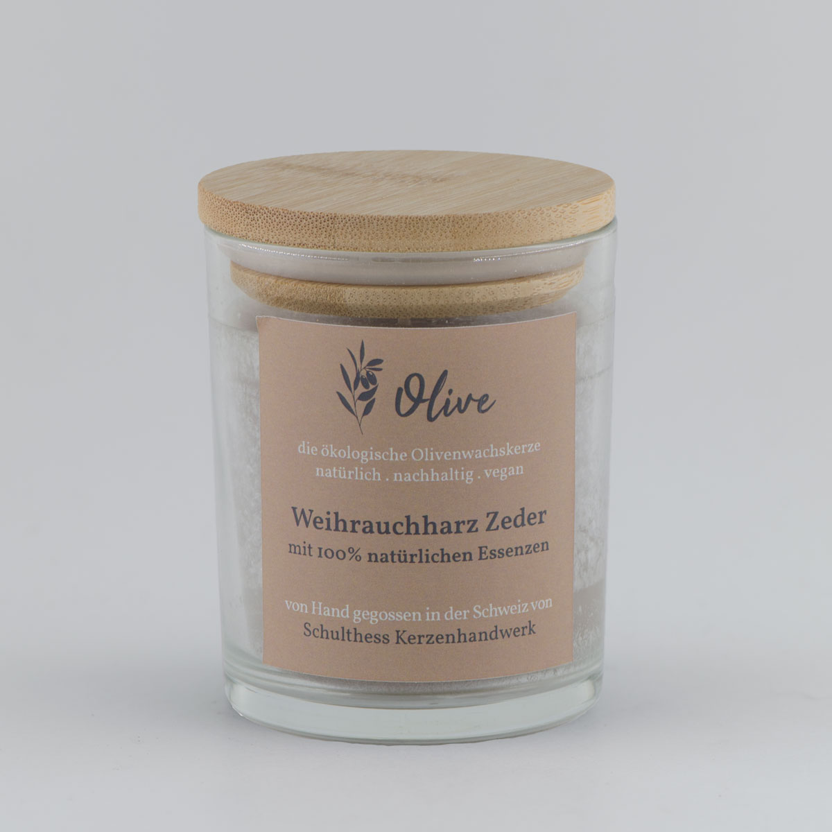 Klarglas mit Olivenwachs – Weihrauchharz Zeder